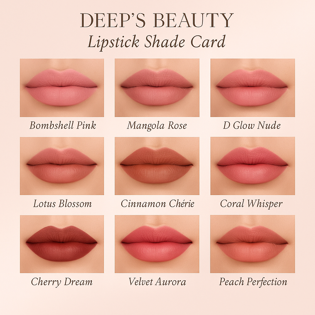 Indulge in bold, long-lasting color with the Deeps Beauty Velvet Matte Lipstick. This ultra-pigmented formula glides on smoothly, delivering intense color with a soft, velvety matte finish. Enriched with hydrating ingredients, it keeps your lips comfortable and nourished while providing a non-drying, weightless feel.