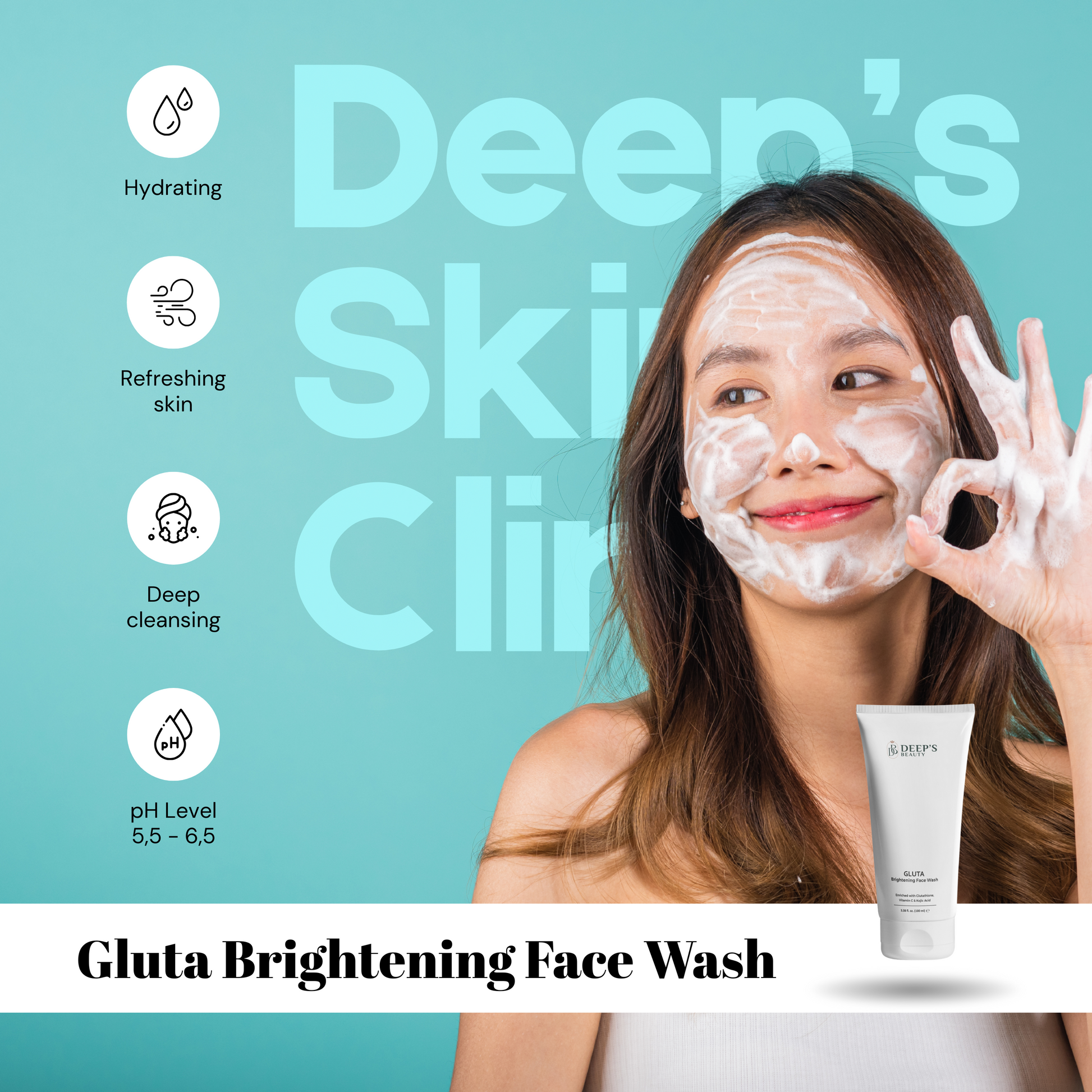 Gluta Brightening Face Wash – Gentle Skin Cleanser with Glutathione & Vitamin C | Deep Clean, Fades Dark Spots, Brightens Dull Skin | For All Skin Types | 100ml